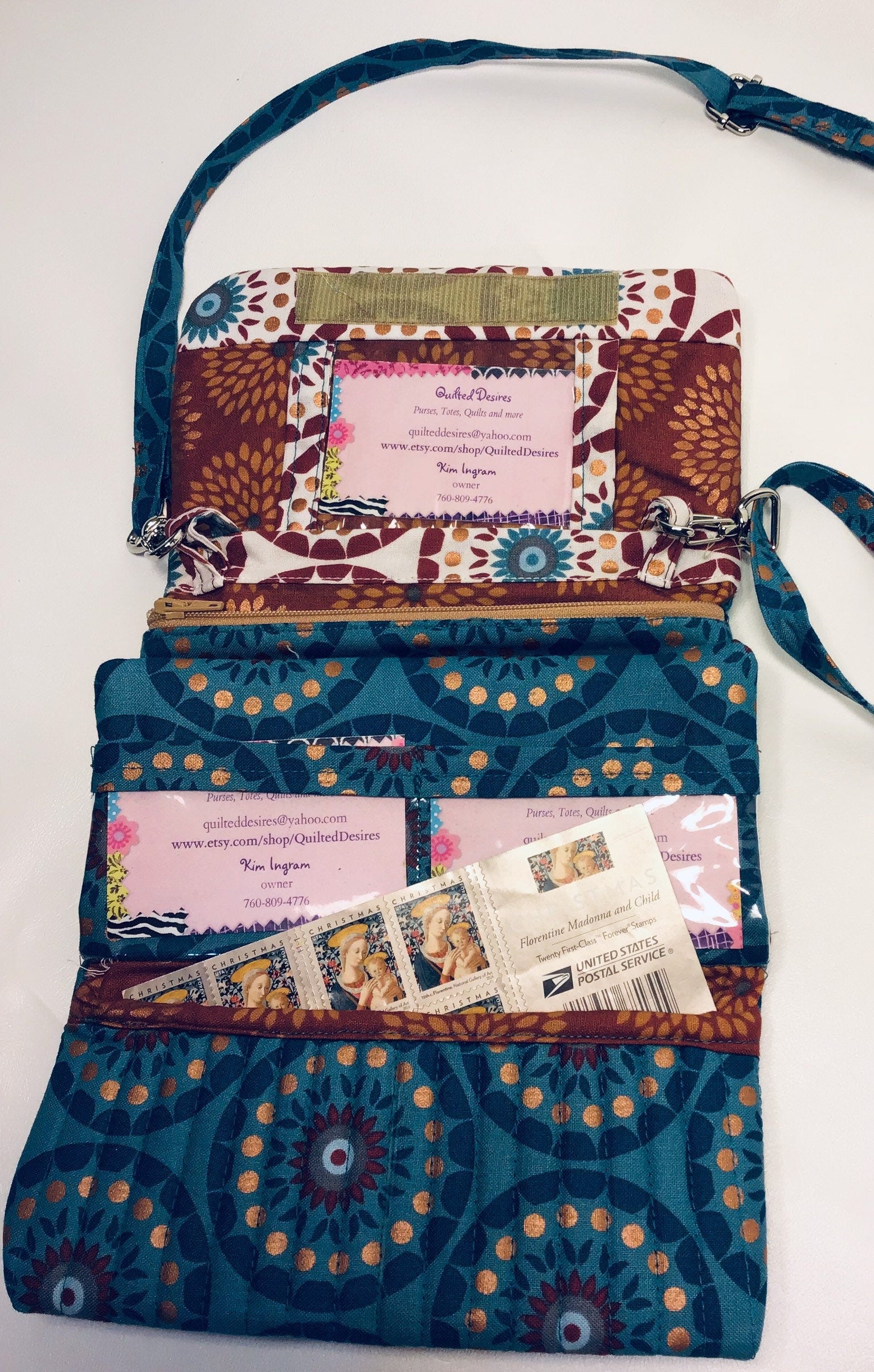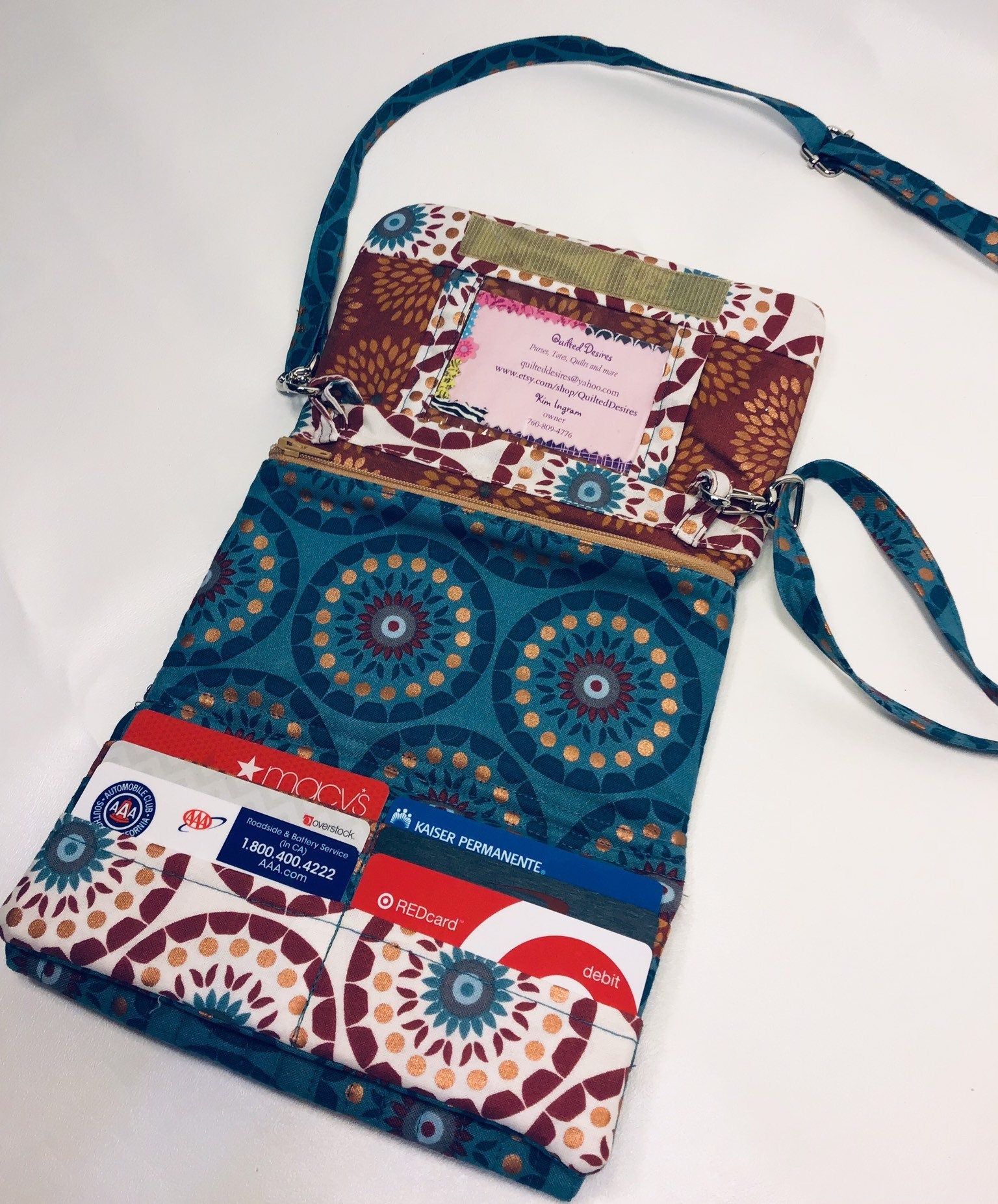 This is a fantastic, handy wallet that folds to 4” x 7 1/2” and has space for everything you need.