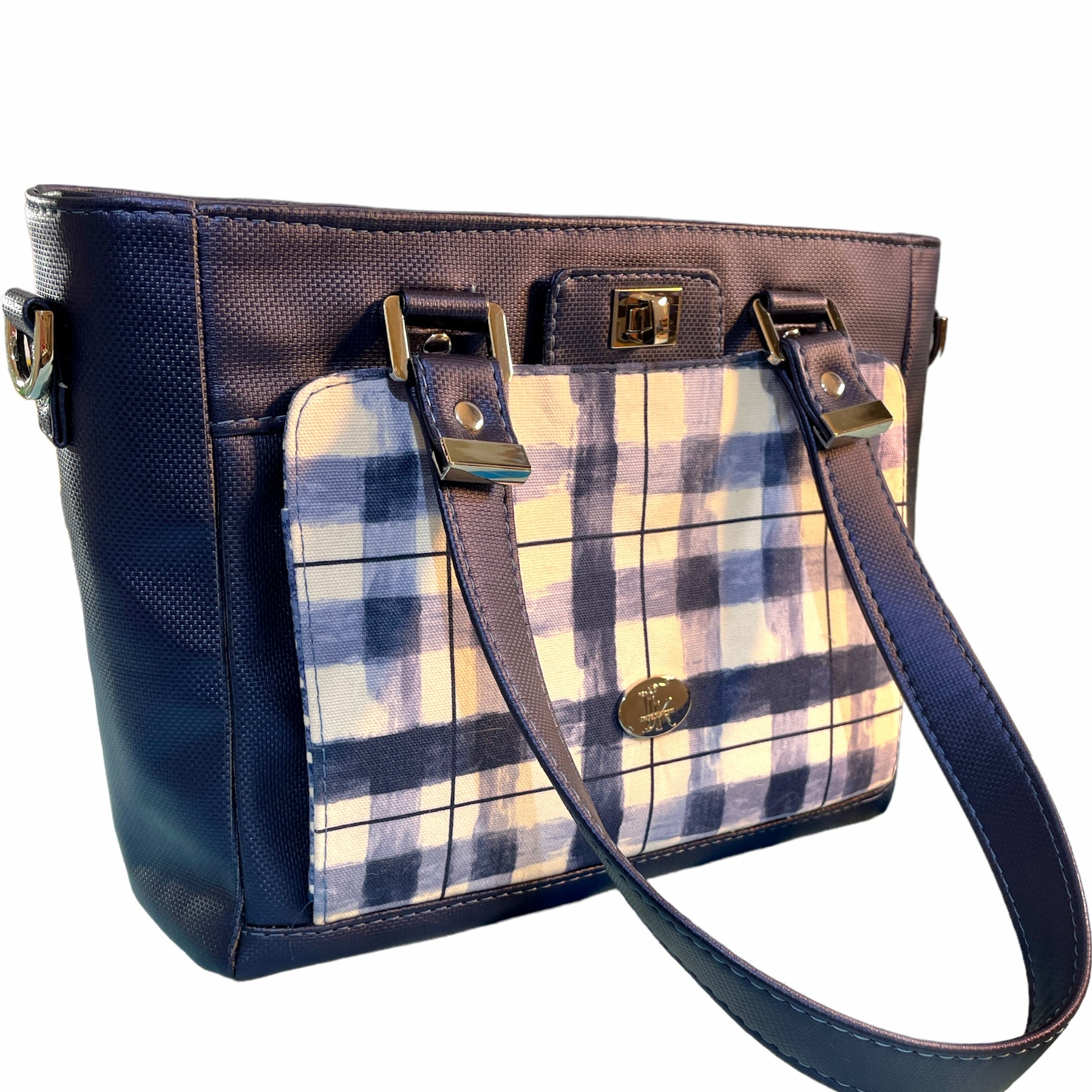 The Sandra Handbag is a structured medium sized handbag with lots of pockets to keep your valuables organized. This bag features an accordion pocket with built-in wallet with 8 card slots, two slip pockets for cash and receipts, and a zip pocket for coin and other essentials. It is secured with two magnetic snaps and a turn lock closure.