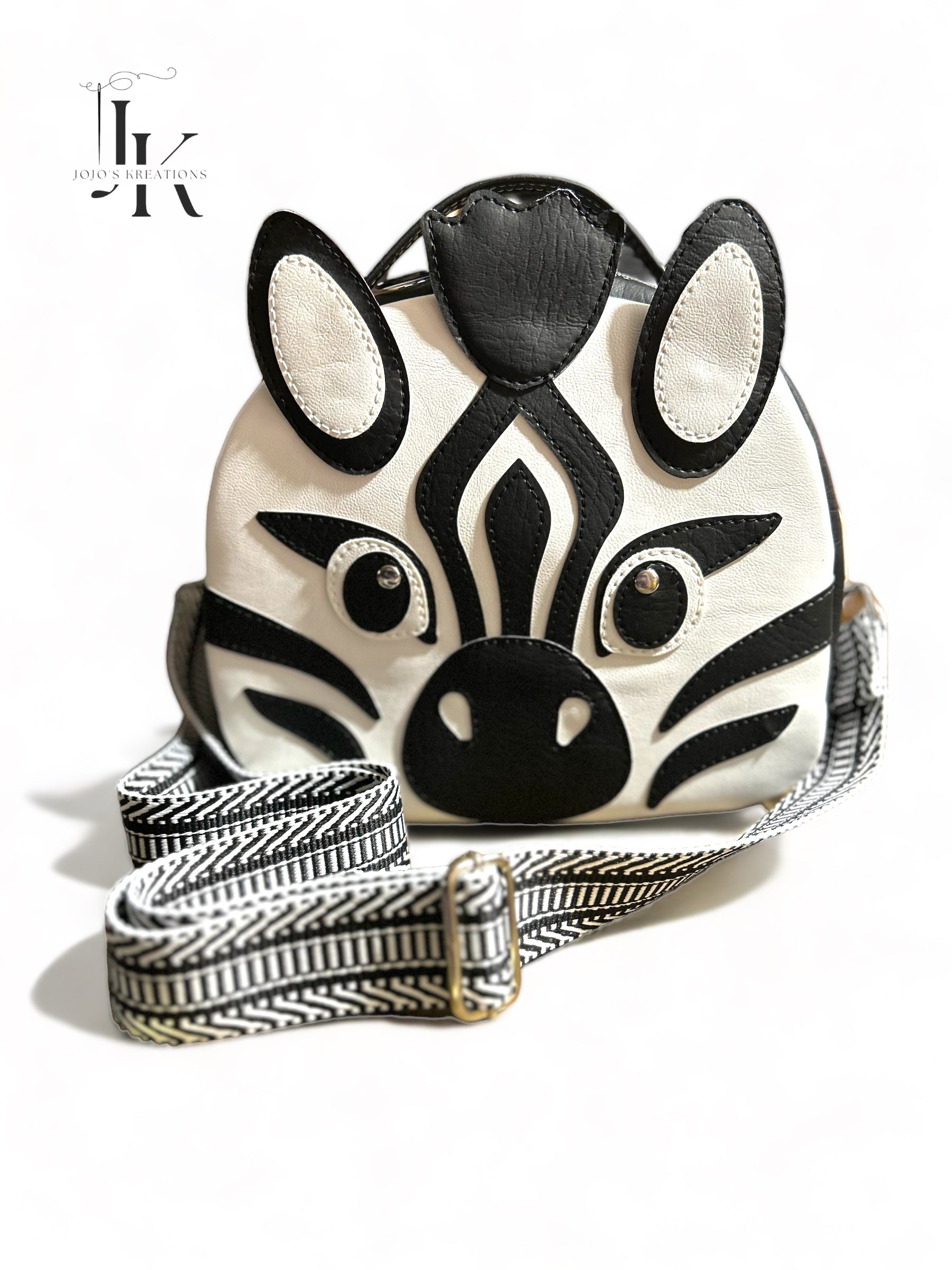 This Zebra Bowler Bag is expertly crafted with a unique combination of vinyl, faux leather, and cotton canvas. Its applique style adds a touch of playfulness to this functional bag. With a rear slip pocket, interior slip pocket, and zip pocket, it offers ample storage and organization. The crossbody strap and handle make it versatile for any occasion. Measures 10" x 9" x 4".